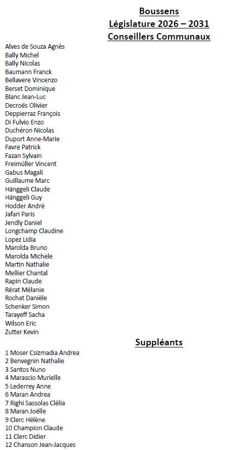 Conseillers communaux – Législature 2026-2031